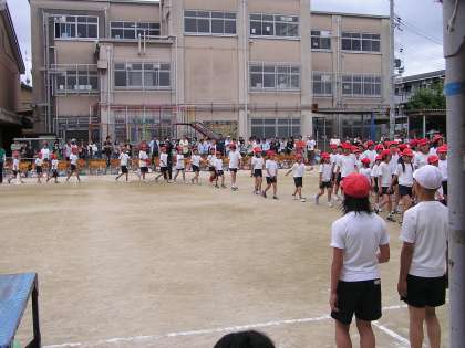1年生の団体競技「おきかえリレー」一人ひとりが力をあわせて一生懸命に走ることができました。