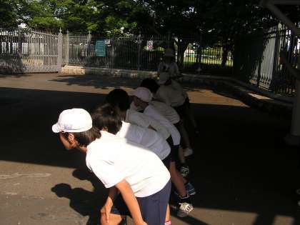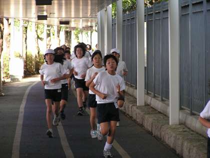 6年生より 「大文字駅伝大会に向けて」 公開日 2009/06/12 更新日 2009/06/12 学校からのお知らせ 今年度も明親小学校では,6年生が大文字駅伝大会に向けて,毎週2回「Let's go running」という名前で,淀競馬場の周りおよそ2キロを全員で走る取組をしています。毎回タイムを記録し,子どもたちは自分のタイムを1秒でも更新しようと,走るペースはそれぞれ違いますが,最後まで力いっぱい走っています。
