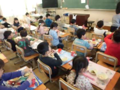 給食当番の児童も,配膳を待っている児童も慣れてきた様子でした。