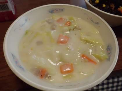 キャベツの甘味たっぷりの新献立「キャベツのクリーム煮」もおいしく味わっていました。