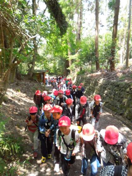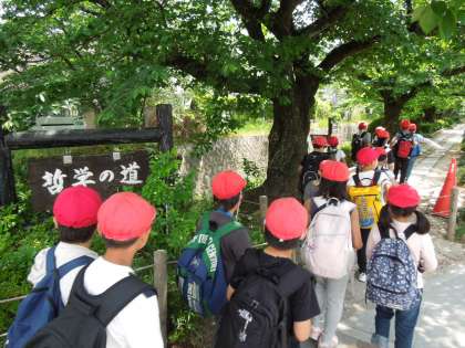 0517 3年生 大文字山登山 その1 公開日 2019/05/20 更新日 2019/05/20 3年生 晴天に恵まれた今日,3年生は校外学習で大文字山に登りました。 上手に電車に乗り,今出川通をひたすら歩き,哲学の道を通り,ようやく登山が始まりました。