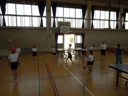 ラケットを使った練習は少ししかできませんでしたが,みんな楽しそうにボールを打っていました。