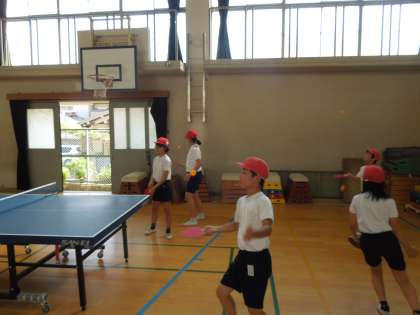 卓球クラブでは,まずクラブ目標を決め,卓球台の準備を練習しました。