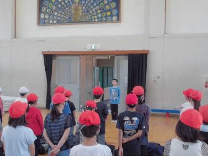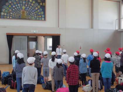 5年生の山の家の活動が始まりました。まず始めは,「出発式」です。