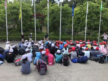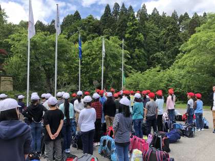 山の家に到着して,最初の活動は「入所式」です。