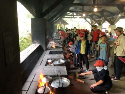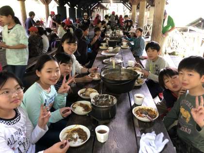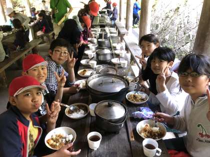 いよいよカレーが出来上がりました。みんなで力を合わせて作ったカレーの味は最高です。仕上がりまでの時間に差はありましたが,どこのグループも頑張りました。いただきます!