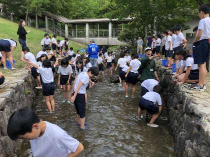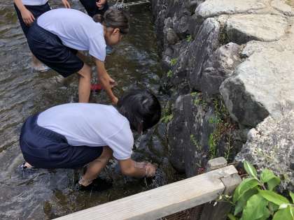 児童全員分プラス教職員分の計65匹のイワナを捕まえます。思っている以上に大変です。でも頑張って最後まで捕まえます!