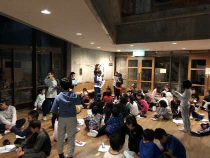 今日の活動の振り返りをしました。グループで話し合ったことを班長が伝えました。明日の活動へと繋がる話し合いとなったのではないでしょうか。明日は,3日目。登山があります。「挑戦」できる一日となることでしょう。
