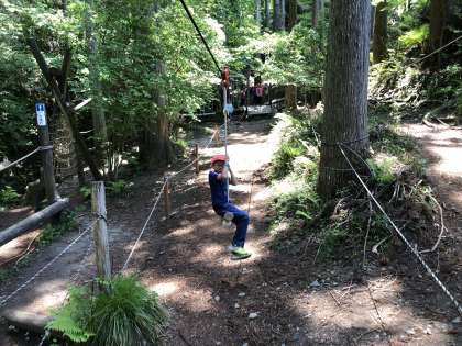 花背焼の活動が素早くできたので,余った時間を使って冒険の森でアスレチックスをすることとなりました。みんな楽しんでいます!