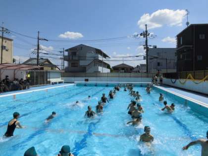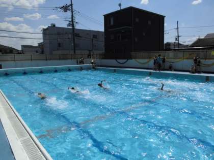 とても天気が良い日に水泳学習がスタートしました。去年の記録よりも上を目指して,学習を進めていきたいと思います。