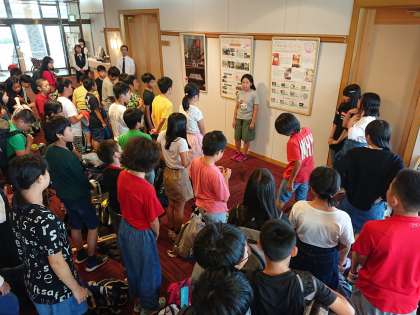 宿『良寛荘』に着きました。バスから宿が見えた時には大歓声!ロビーで入館式を行い,今から部屋に入ります。この後は夕食です。どんな料理が出てくるのでしょうか。