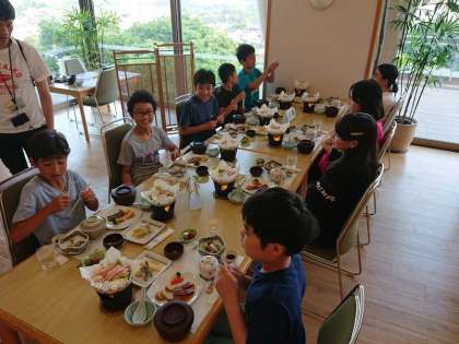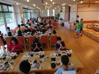 少しずつお腹が減ってきました。いいタイミングで夕食の時間となりました。みんなで手を合わせて,いただきまーす!