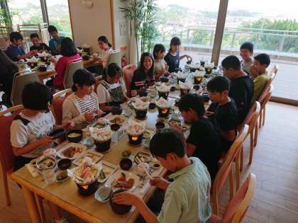 夕食を食べた後はお風呂に入ります。そして,今日1日を振り返る学習会を行います。見学して学んだことや今日の行動について話し合います。明日の活動につながる交流ができればいいですね。