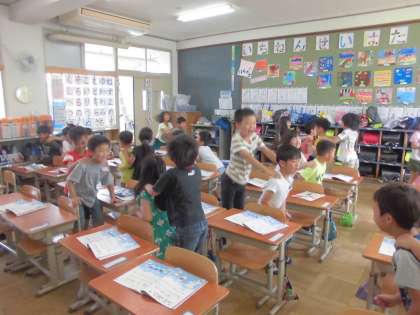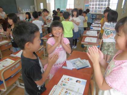 歌に合わせて手拍子を打ったり,体を動かしたりしました。