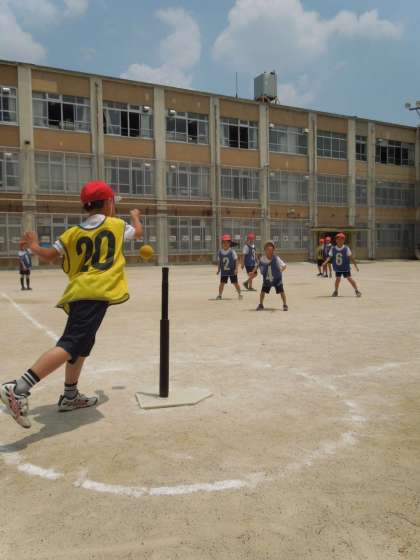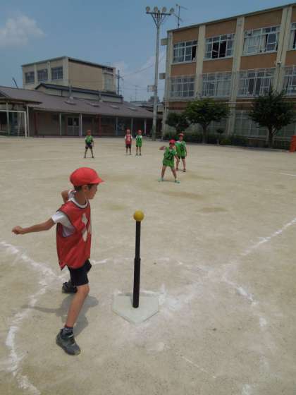 水泳学習と並行して,体育でハンドベースボールが始まりました。