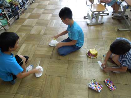 やはり,動くおもちゃは作って遊べるので,みんな真剣そのもの!