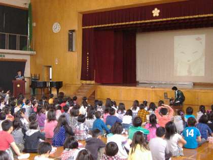 今週は「憲法週間」です。今日の朝会では,校長先生から絵本の読み聞かせがありました。題名は「ともだちごっこ」。きつねとおおかみが主人公のお話で,子どもたちは静かに聞き入っていました。お話を聞いた子どもたちからは「友だちを大切にしないといけない」「悪口を言わない」「約束をやぶらない」などの感想が出ていました。みんなが仲良く楽しく過ごすためには何が必要か,またみんなで話し合っていきたいと思います。