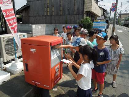 0723 3年2組 1学期ありがとうございました 公開日 2019/07/25 更新日 2019/07/25 3年生 23日(火)終業式がありました。 あっという間に3年生も3分の1が終わったことになります。 遊びに,学習に,充実した夏休みを過ごしてもらいたいと思います。 保護者の皆様,1学期の間,ありがとうございました。 2学期からもよろしくお願いします。 写真1 終業式 写真2 暑中見舞いをポストに投函しました。 写真3 通知票