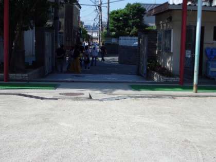 PTA役員の方々が校門で子どもたちを迎えてくれました。