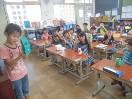 夏休みの宿題で作ってきた自由作品をクラスで発表し合いました。
