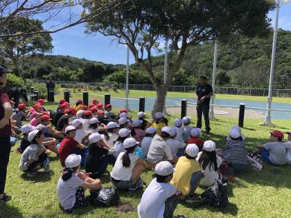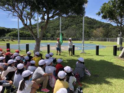 みさきの家1日目 入所式 公開日 2019/09/09 更新日 2019/09/09 4年生 『なかよし港』から営火場付近に移動して,入所式を行いました。司会の役割等,自分たちで式を進めていきます。頼もしく感じる姿を見せてくれていました。