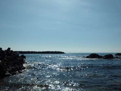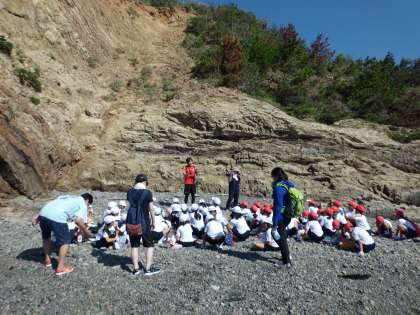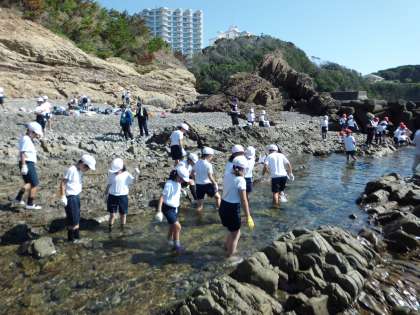 説明を聞き,その後は,磯観察を行います。天気にも恵まれ,たくさんの生き物が発見できそうです。