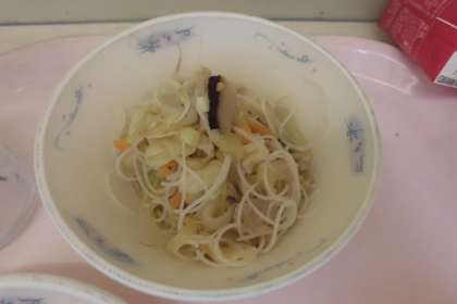今日の献立は,たっぷり野菜のビーフンでした。ビーフンは今年になって2回目の登場でした。