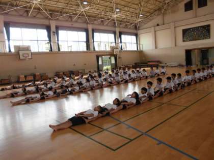 小学校最後の運動会に向けて,組体操の練習を頑張っています。力を合わせてする技や,一人ひとりの美しい技を完成させるために毎日の練習に取り組む6年生です。