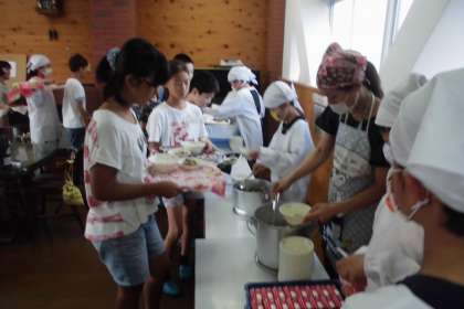 5年生は姿勢よく食器を持って食べていました。