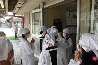 今日は5年2組がランチルーム給食でした。スペシャルゲストの給食調理員さんも子供たちの食べる様子を見に来てくれました。食べ物クイズをして,楽しくいただきました。