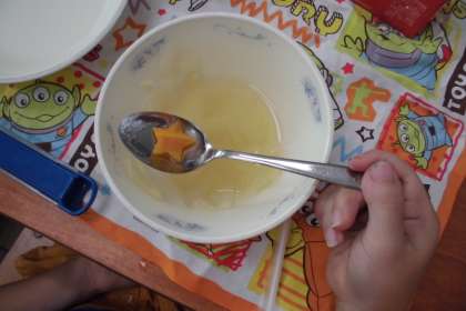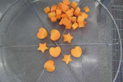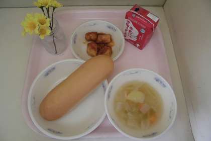 残暑厳しい中,運動会に向けての練習を頑張っている子供たちのために,野菜のスープ煮の中に星形とハート型のにんじんを入れました。