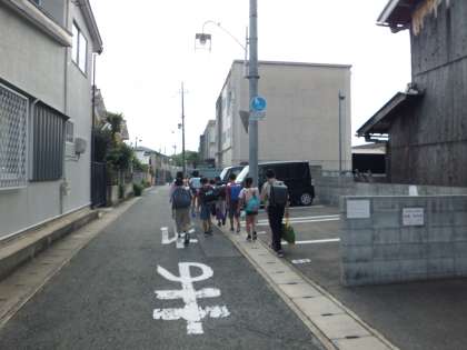 登校班で安全に登校しています。