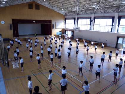 音楽に合わせて,立ち位置や技の確認をしています。