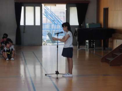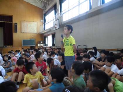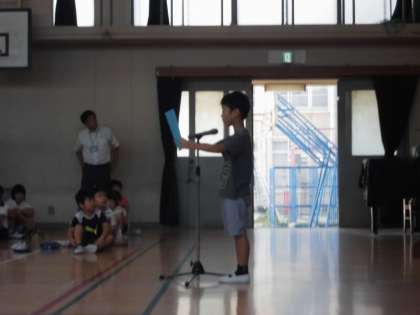 3年生の2人が代表で全校の前で発表してくれました。