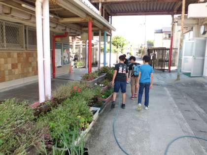 環境委員会の子どもたちが,丁寧に水やりをしています。