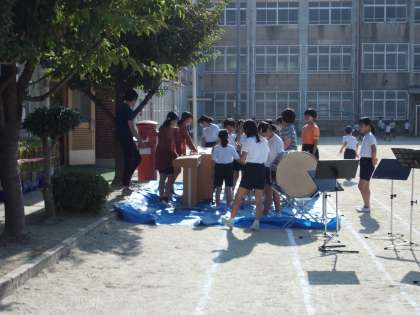 音楽部の子どもたちが運動会の入場曲の演奏練習をしています。