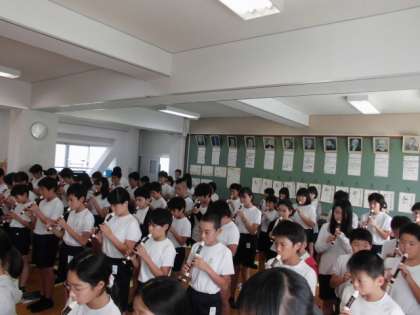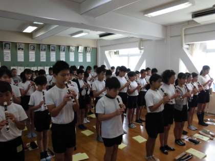 運動会の練習で忙しい6年生ですが,休み時間にもリコーダー練習を頑張る姿が見られます。