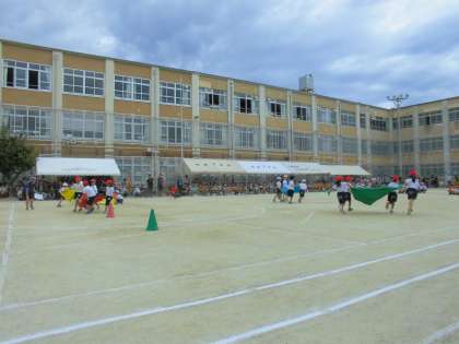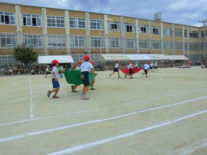 かわいらしいダンスの後,協力して箱を運びました。白熱したリレーとなりました。