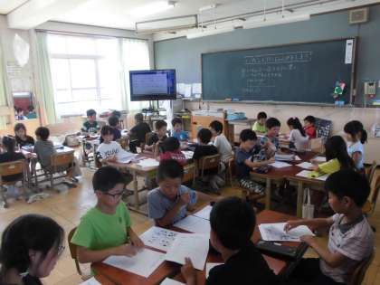 木曜日の町探検に向けて,お店ごとにグループに分かれて質問を考えました。