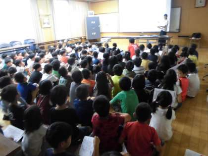 8日(火)の5時間目に1・2年生合同で遠足の説明を行いました。電車に乗って移動することや気を付けることなど全体で確認しました。