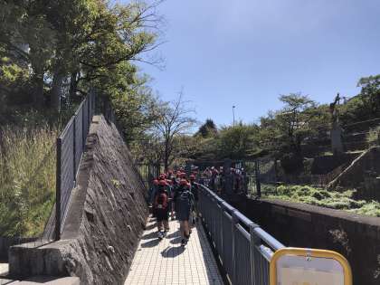 インクラインを歩いて,昼食場所へ向かいます。