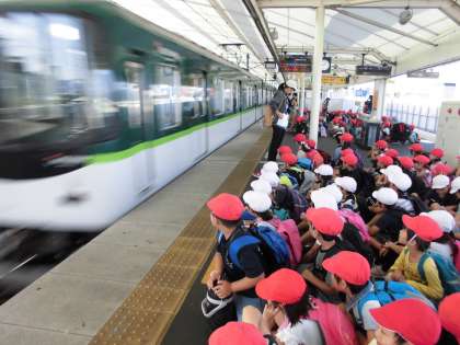 写真は行きの写真です。特急電車が目の前を通り,子どもたちはびっくりしていました。