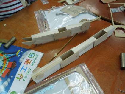くぎを使って板や木材をつなぎ合わせていきます。