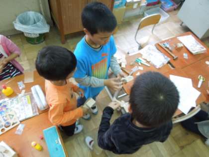 作った作品お互いに見せ合って交流する子もいました。