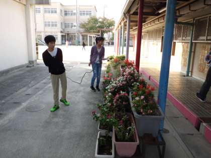 環境委員会の子どもたちが水やり当番をしています。