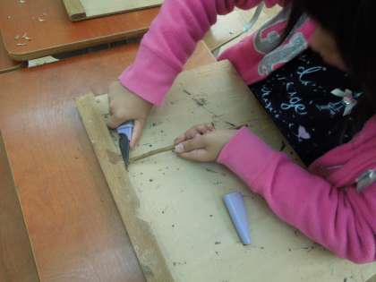 今日の図工は,小刀で木の枝を削り,オリジナルのペン(筆)を作りました。