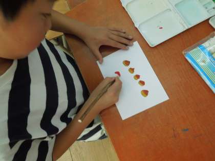 その後,自分で作った筆で「秋の味覚」を描きました。