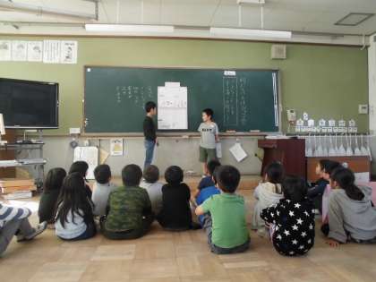 生活の学習で町探検発表会を行いました。質問したことをグループに分かれて発表します。練習をして,大きな声で発表することができました。