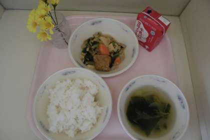 今日は,魚介類の「かき」から作ったオイスターソースの旨味をいかした「厚あげのオイスターソースいため」が登場しました。ふんわりとした厚あげと,シャキシャキとしたチンゲン菜の食感を味わいました。