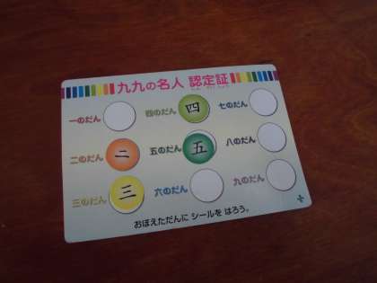 合格したらカードにシールを貼って,頑張りが目に見えるようにしています。ご家庭でも,たくさん練習できるといいですね。目指せ全段合格!